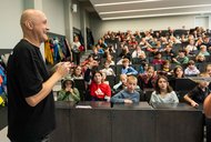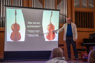 Die Vorlesung war sehr anschaulich gestaltet. Es gab viel Hintergrundwissen über die Familie der Streichinstrumente und es konnten sogar die verschiedenen »Familienmitglieder« vor Ort auf der Bühne ausprobiert werden. Fotos: Maik Schuck