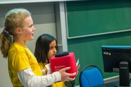 Die Vorlesung war anspruchsvoll und sehr informativ. Frau Dr. Winter hat viele Beispiele für Hologramme gezeigt – so zum Beispiel auf Geldscheinen oder auf Sammelkarten. Besonders beeindruckend waren ein Video mit Albert Einstein als Hologramm und ein Video über den Zirkus, der mit Hologrammen von Riesenelefanten und durchsichtigen Glitzerpferden die Manege in eine bunte Zauberwelt verwandelte. Fotos: Maik Schuck