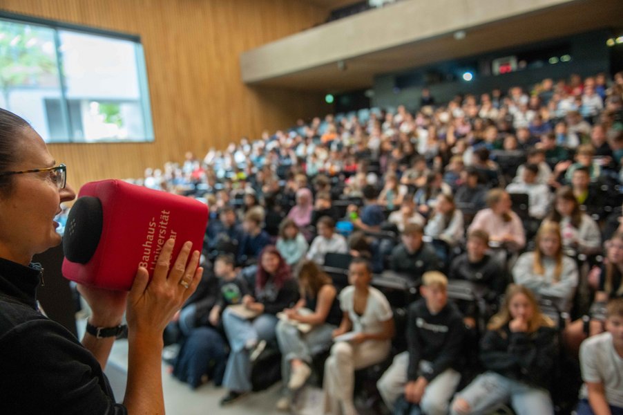 Über 800 Kinder aus den Weimarer Schulen und den Schulen des Weimarer Landes besuchten mit ihren Klassen die Vorlesungen des Kinderuni-Campustages am 24. September. Herzlichen Dank an alle Dozent*innen für die interessanten Vorlesungen, an das gesamte Mensa-Team für das traditionelle Nudelgericht zum Campustagabschluss, an unseren Fotografen Maik Schuck für die schönen Bilder und an die vielen Helfenden in der Betreuung der Technik und Ausstattung!