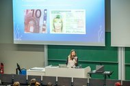 Die Vorlesung war anspruchsvoll und sehr informativ. Frau Dr. Winter hat viele Beispiele für Hologramme gezeigt – so zum Beispiel auf Geldscheinen oder auf Sammelkarten. Besonders beeindruckend waren ein Video mit Albert Einstein als Hologramm und ein Video über den Zirkus, der mit Hologrammen von Riesenelefanten und durchsichtigen Glitzerpferden die Manege in eine bunte Zauberwelt verwandelte. Fotos: Maik Schuck